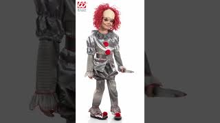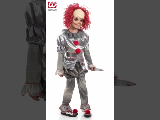I pantaloni lunghi grigi, dotati di pratici copriscarpe, permettono al bambino di muoversi comodamente durante la serata, mantenendo sempre un aspetto terrificante. A rendere ancora più caratteristico il costume ci sono i pantaloncini corti a palloncino, anch'essi inclusi, che vanno indossati sopra i pantaloni lunghi. Questi pantaloncini, dal design ampio e arrotondato, richiamano ancora di più l’abbigliamento tradizionale dei clown, ma con un'inquietante distorsione.